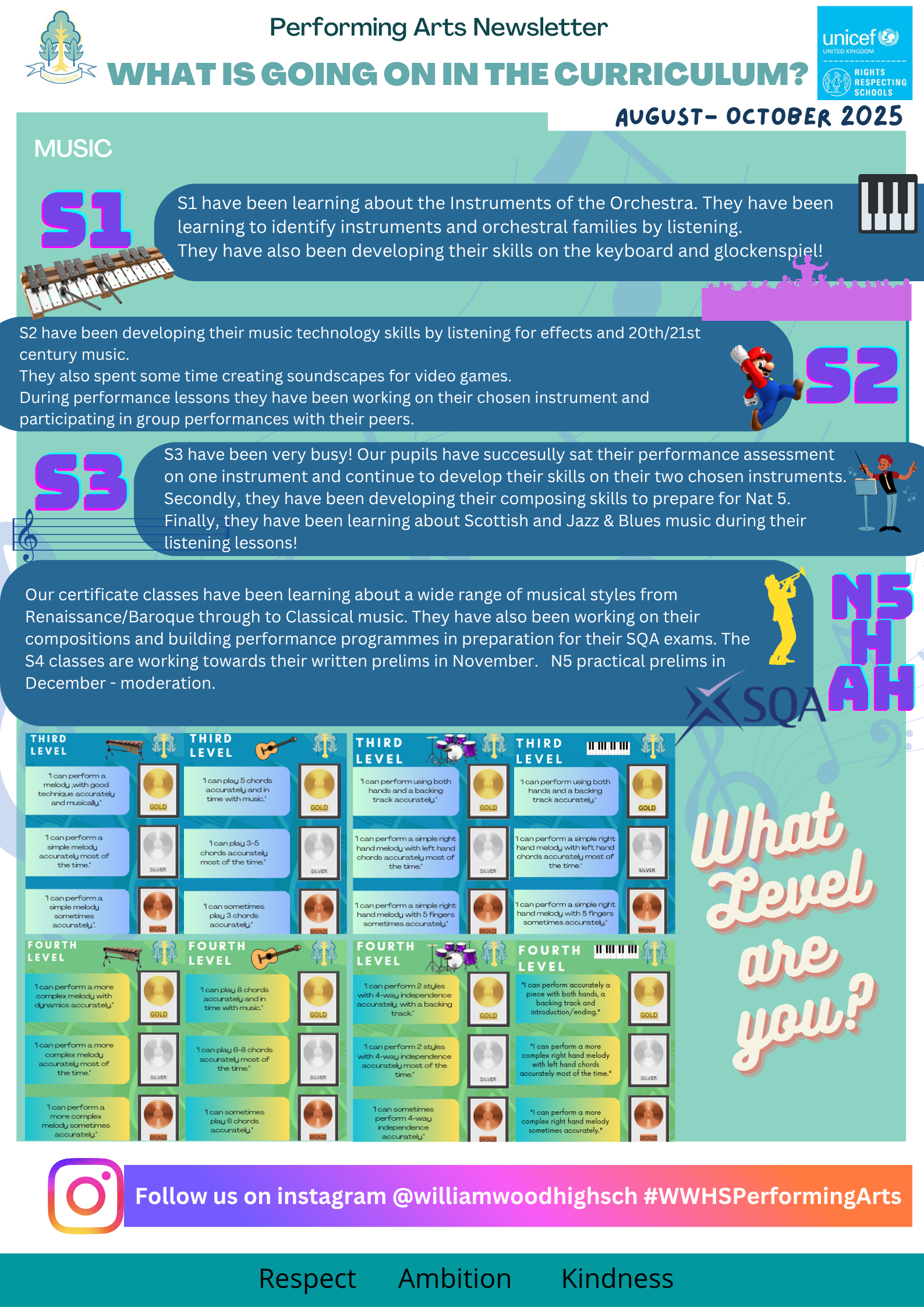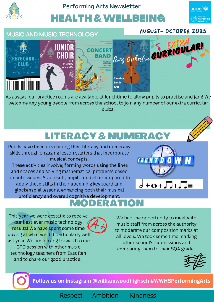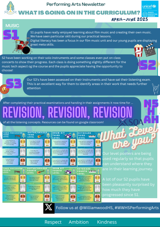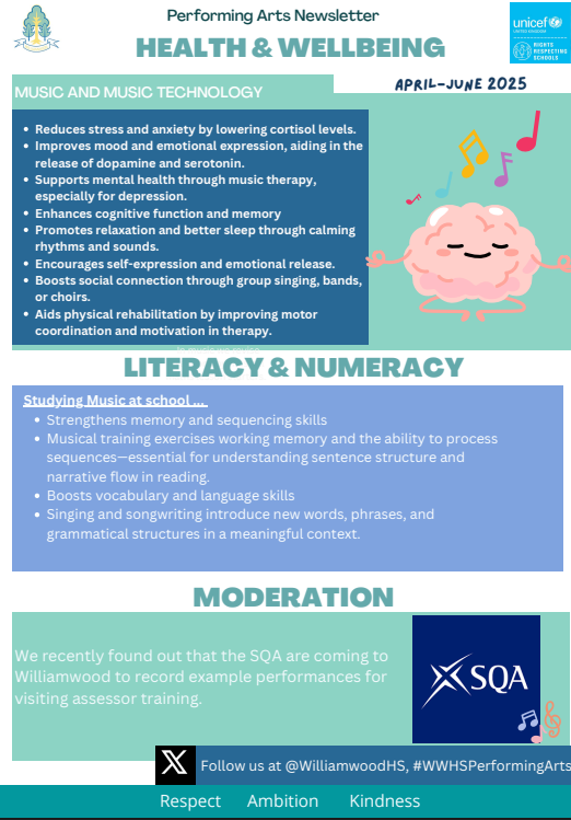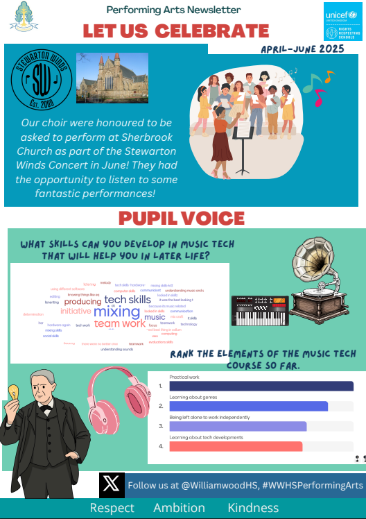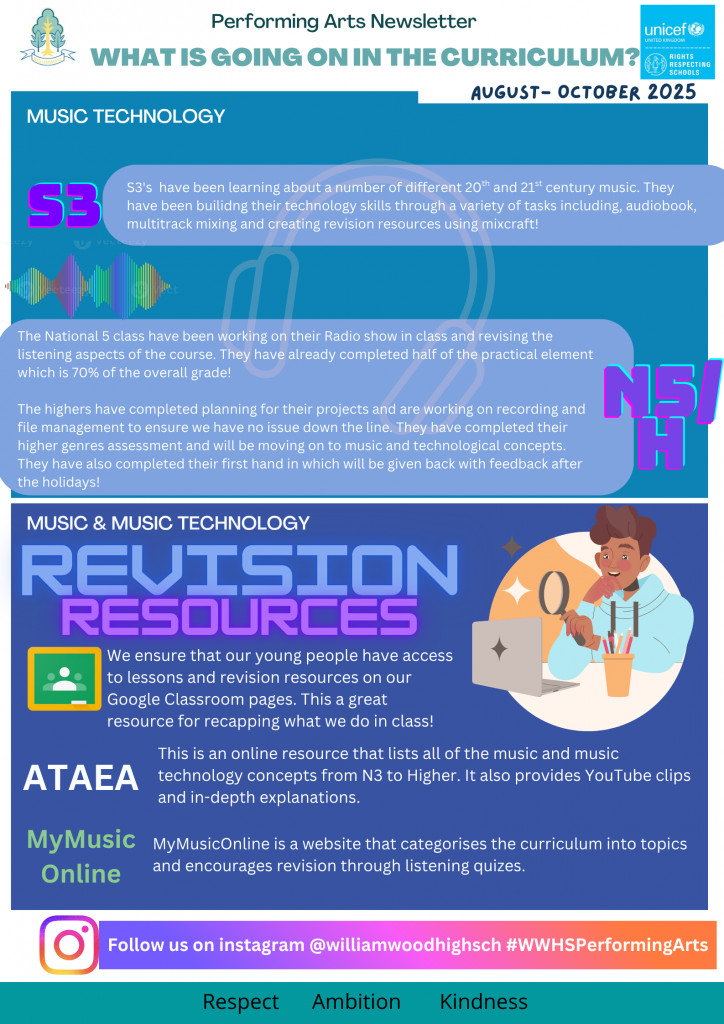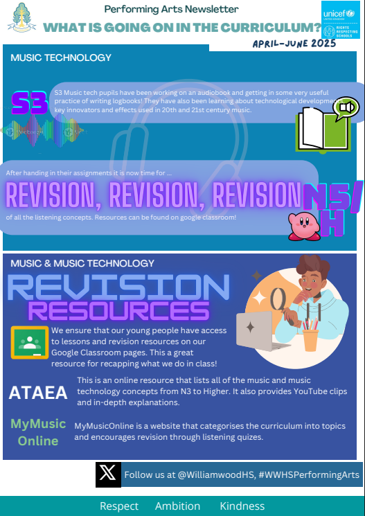 Digital Literacy – Our learners utilise a range of digital technologies to enhance their learning such as video recording performances in order to evaluate practical work. We use online sound effects, Microphones and Mixcraft for Radio Plays and digital projections in exam performances. Interactive learning: Kahoot, Blooket, Quizlet, Google Classroom