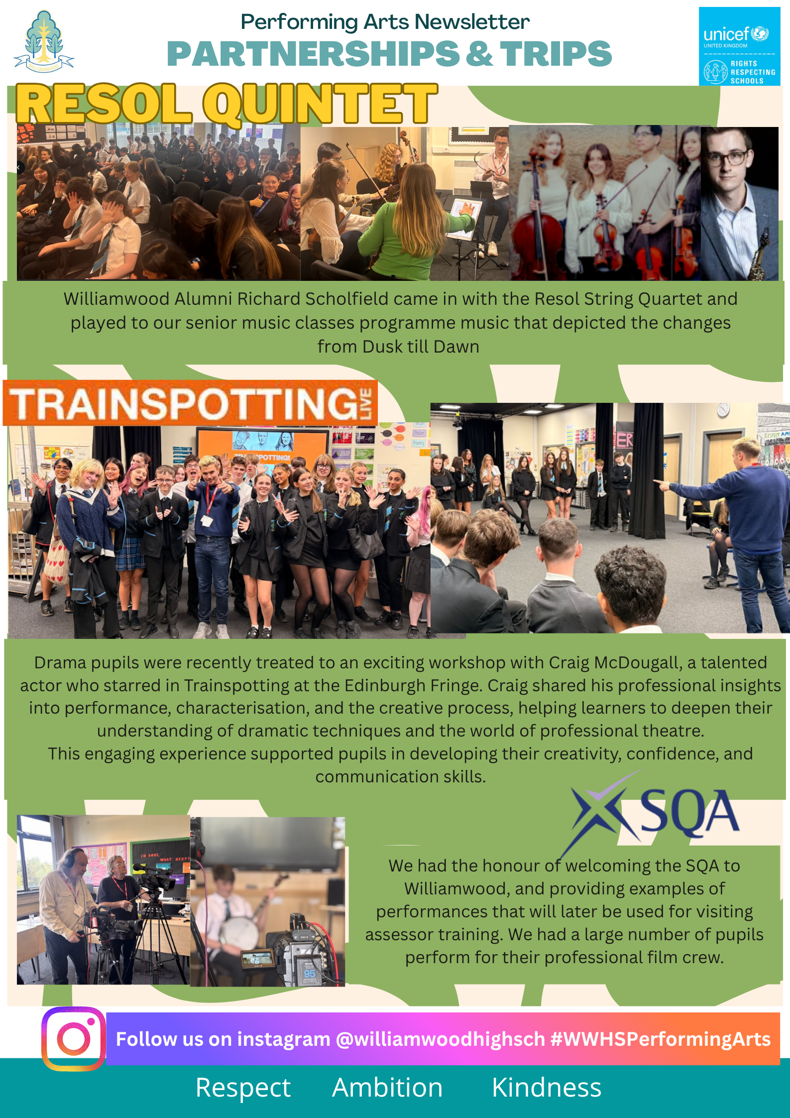 Partnerships – Esteemed former pupils with thriving careers in the Creative Industries, e.g. Actors, Lighting Designers, Writers for TV, Stage Managers have influenced course choices, delivered workshops and shadowing work experience. We work closely with professional theatres and have conducted transition projects with our primary cluster schools.